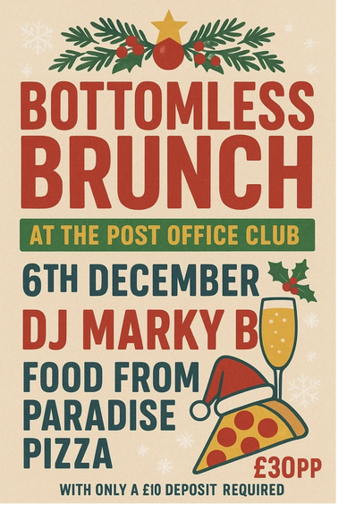 Back again at the club for its 2nd appearance our Bottomless brunch. Was such a great success the last time we want to do it again. Definitely not worth missing only 40 tickets available for this one. Unlimited drink great food great company be sure to get booked in £30 per person but you can secure your ticket with just a £10 deposit.