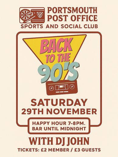 Stroll down memory lane with DJ John and back to the 90s all 90s music all night a great way to to end November. Just £2 for members and £3 Guests